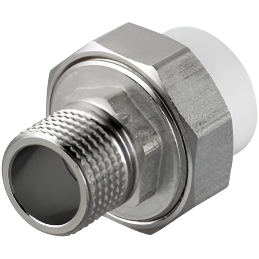 Муфта представляет собой разъемное соединение между металлической и пластиковой трубой.
